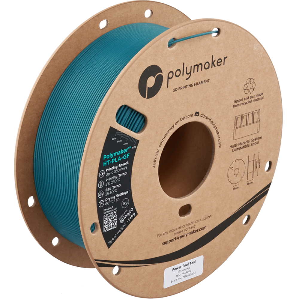 Polymaker™ HT-PLA-GF combines high-temperature stability with enhanced strength and durability. Withstands up to 150°C without sagging or losing form. When annealed it can be perfect for functional parts that need to endure the heat. Learn More About the Product