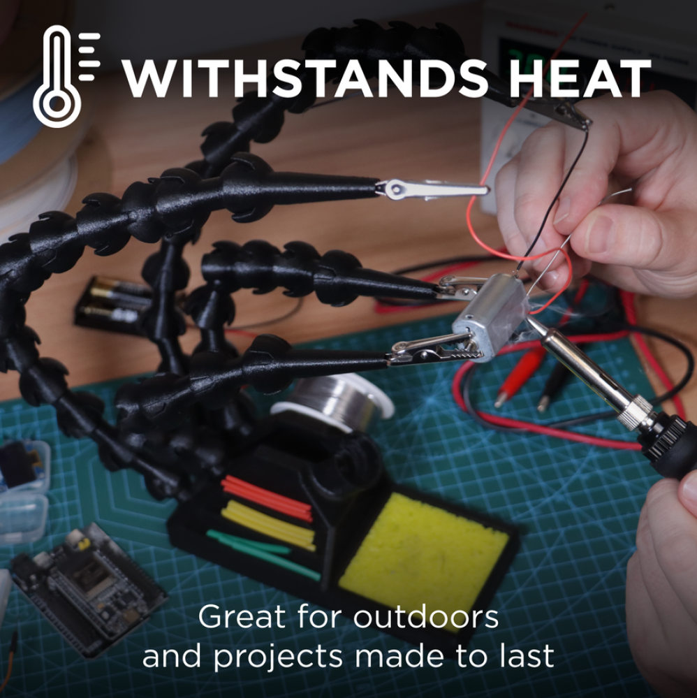 Polymaker™ HT-PLA-GF combines high-temperature stability with enhanced strength and durability. Withstands up to 150°C without sagging or losing form. When annealed it can be perfect for functional parts that need to endure the heat. Learn More About the Product